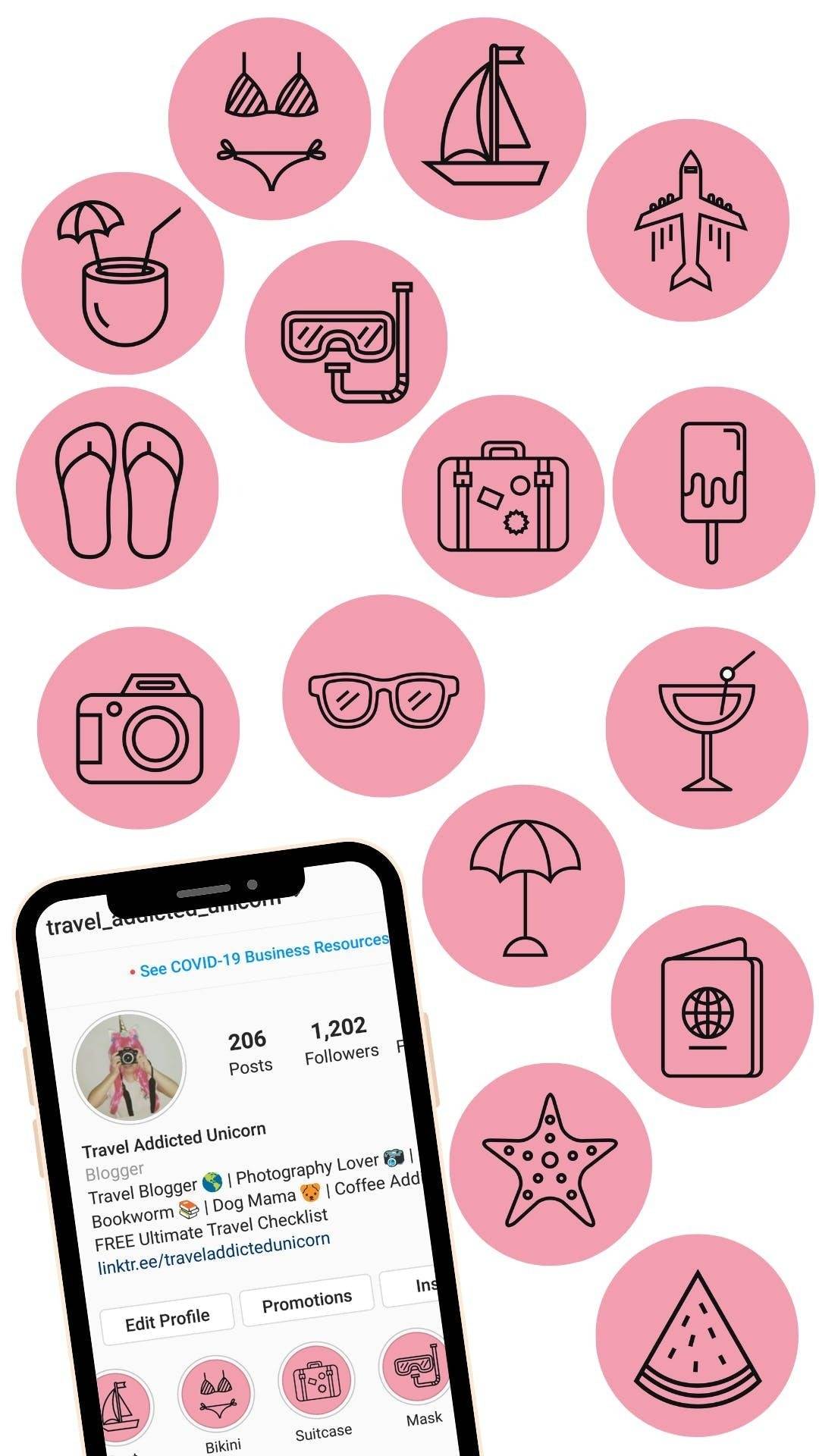 FREE 15 Pink Beach Inspired Instagram Highlight Covers